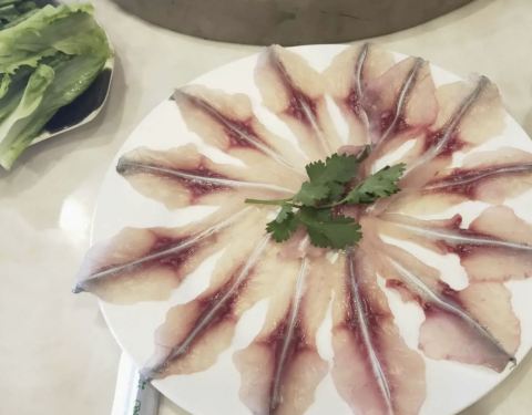 ...斑鱼肯定是非彼石斑鱼,应该是一种养殖的淡水鱼,不过涮出来味道还是可以的,口感挺鲜嫩的,值得尝尝