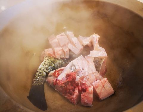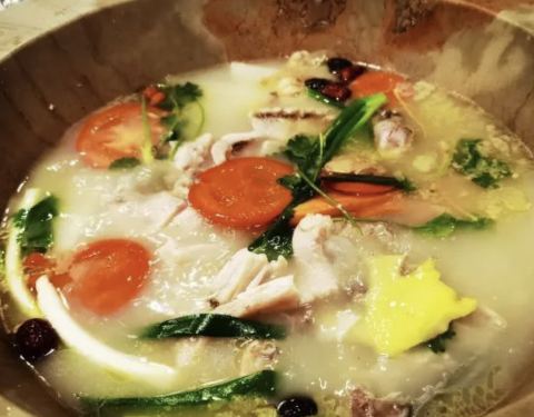我们吃的也是这种蒸汽石锅鱼,靠蒸汽煮熟的,要的是酸汤,有香茅草的香味,可惜鱼没有桂花鱼了,只有青鱼了