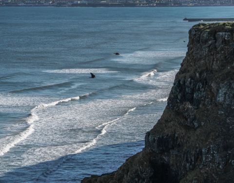 其实这处景点还是蛮小众的,并不是旅游景点,所以旅游大巴也不会来到这里。这里更像是一处当地人,可以晒晒太阳,遛遛狗的休闲去处。一栋罗马式的小庙,孤零零的矗立在悬崖绝壁上,背后就是平静的海面。神庙建造于公元1785年,多年以来由于悬崖表面不断被侵蚀,导致穆森登神庙不断向边缘靠近,悬崖下是一片平坦的海滩,绵延七公里的沙滩,这里是有名的冲浪之地。
