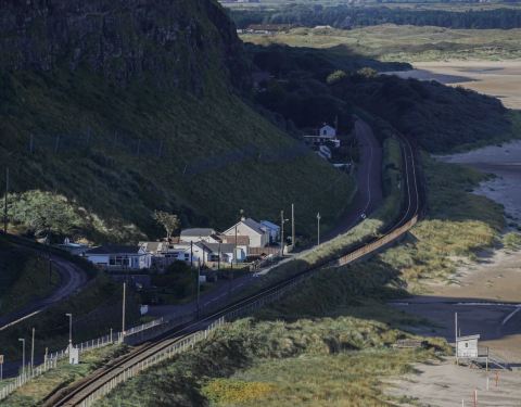 “黑夜降临,充溢恐惧。”美剧权游第2季中,伴随着这句咒语,红衣女在此登场。她在龙石岛海滩焚烧维斯特洛七古神雕像,火焰冲天。现实生活中,这个海滩是一个冲浪胜地,海边悬崖上耸立着一座小巧的神庙——穆森登神庙,海边还有一条铁道,每天会有火车擦着海岸线通过。