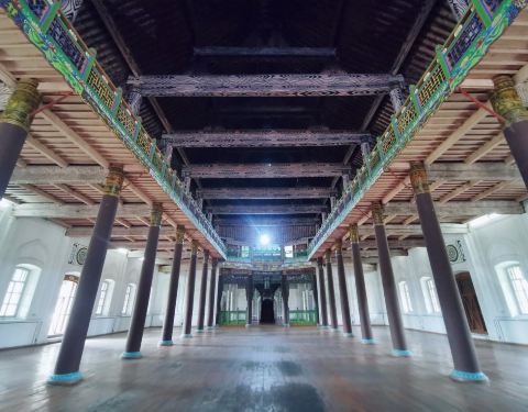 始建于1895年,由中国建筑师鸿峰设计建造,坐落在阿拉木图的扎尔肯特镇 Zharkent Town。大殿“浮顶”的四个飞檐向上弯曲,末端上装饰有代表清真寺的星月标志。进入主殿,清真寺的宽敞感就十分明显了,放眼望去,...