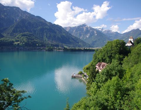 Interlaken附近小镇Ringgenberg应该是以古堡的名字命名的,古堡在Brienzersee湖边上,免费参观。小镇里的Brienzersee酒店位置很好,紧临蔚蓝的湖水,面对青山、遥望雪峰,风景绝佳。