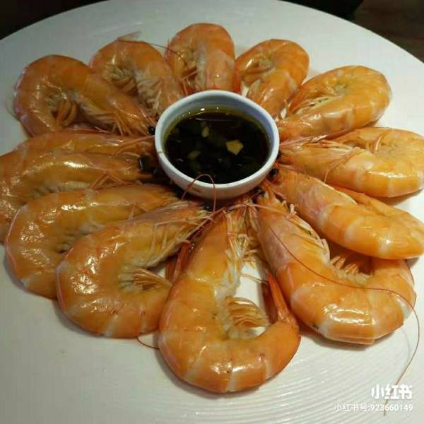 |白灼甜脆中华海虾^就是普通基围虾,不过活的挺新鲜就是了。吃了个精光。