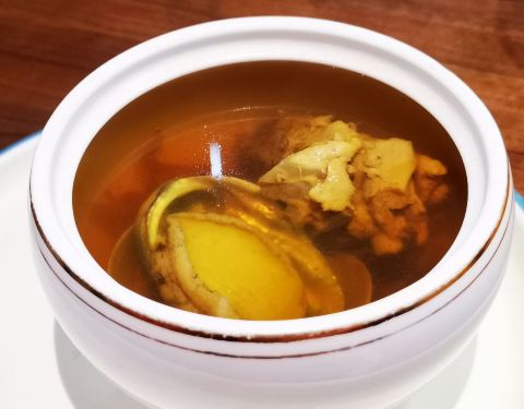 |虫草鲍鱼例汤(上位)^相比起四个月前来喝的鲍鱼汤,可能进行改进了? 基本没腥味了! 值得表扬!!确实有进步。