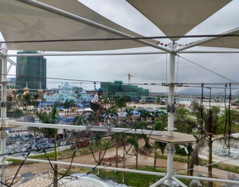水晶塔比较刺激,在教练的耐心帮助下终于登顶骑上了自行车果然很小,而且项目大多适合儿童,我这个成人进去无聊的很。水晶塔比较刺激,在教练的耐心帮助下终于登顶骑上了自行车。除了这个项目外就没有适合成人的了,对我来说性价比很低!