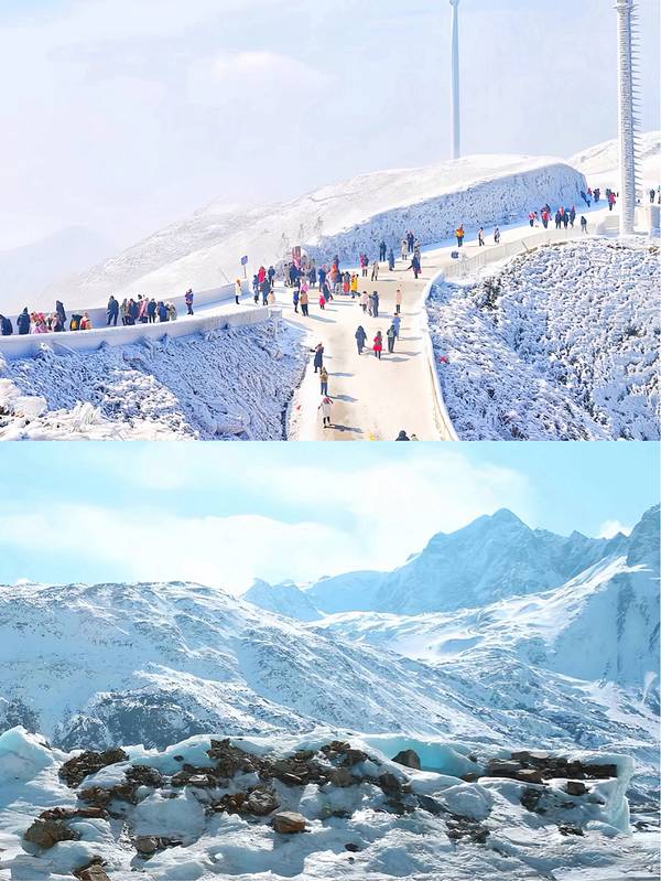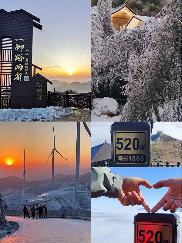 去不了长白山就去云冰山吧!|||🌨在广深哪儿欣赏冬日的白雪皑皑?❄当然是云冰山了!一山横跨两省,云海频繁,都融入广东人的雪之歌。这个地方既小众又人少,以休闲娱乐为主。广深出发,只需一日,雪国童话就在你的眼前!现在就跟我来探索一下云冰山的冬日魅力吧~🎿 🏔 【探秘云冰山】 1️⃣定位:云冰山坐落在湖南省蓝山县,南岭山脉中段北侧,南接广东省连州市。✈ 2️⃣开放时间:每周一至周日的8:00-17:00。⏰ 3️⃣门票: 登山之旅仅需要80元/人,包含了停车和景区往返观光车的费用。🎟 💫【行驶在云冰山的路上】 1️⃣自驾出游:你可以从广深自驾约4小时就能达到,包车前往也是不错的选择哦!🚗 2️⃣公共出行:没有直达的公共交通,不过你可以选择坐客车到蓝山县,然后再包车1小时前往。🚌 3️⃣门票: 80元/人包含停车和景区往返观光车的费用;老人/学生票:仅40人民币!💼 🔮 什么时候去云冰山最好? 我推荐12月到2月,这个时间你有机会在云冰山迎接满山的雾凇哦!❄ 🎈【绝美打卡地】 冷暖空气在云冰山交织,每年冬天,"雾凇、雪凇、雪景、云海"的奇观便纷呈眼前,每次都能持续一个月左右时间。🌪 1️⃣ 登顶的520级阶梯🥾(情侣打卡的好选择) 2️⃣ 云海仙境风车🎡 3️⃣ 冰封的铁索桥🌫 4️⃣ 云顶咖啡屋☕(广东的"孤独雪山咖啡屋") 5️⃣ 一脚🦶跨两省打卡点(湘粤交界):一边是湖南,一边是广东 6️⃣ 滑雪场🎿。 🏡 【住宿推荐】 在山脚下有很好的木屋民宿供选择,如果你想看星空银河🌌,记得早早起床上山哦! 🎒 【建议带上这些】 1️⃣ 1-2套替换衣物,登山鞋,羽绒服、抓绒冲锋衣 2️⃣ 身份证和一些现金💳 3️⃣ 帽子、手套、围巾,冰爪,登山杖🥾 4️⃣ 充电器,移动电源,相机📷 5️⃣ 水和干粮零食等🍫 ❗ 多备2个口罩以备不时之需😷 🎉【活动推荐】 云冰山有很多值得的活动,如: 1️⃣登山:你可以穿过白雪皑皑的林间小道,攀登山峰,欣赏壮丽的雪景。 2️⃣滑雪: 如果你喜欢滑雪,你可以在云冰山的滑雪场解锁一项新技能。 3️⃣摄影:在云冰山有很多绝美的拍照点,你绝对不能错过。 ✈ 【如果你从其他城市出发】 如果你不是在广东地区,那也没关系。你可以选择乘飞机前往广州白云机场,然后再选择其他交通工具前往云冰山。或者乘高铁到广州,再换乘汽车或班车到云冰山。只要有心,总能找到方向。 总的来说,如果你想在广州欣赏冬季美妙的雪景,那么云冰山绝对是你的最佳选择。这里的美景会让你流连忘返,让你的冬季之旅充满了惊喜和记忆。无论你是独自一人,还是与朋友或家人一起,都一定要抓住这个机会,来云冰山体验一次难忘的冬季之旅吧! #冬日漫游指南 #广东周边游 #深圳周边游 #云冰山 #邂逅冬日美景