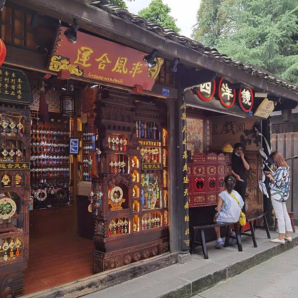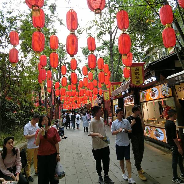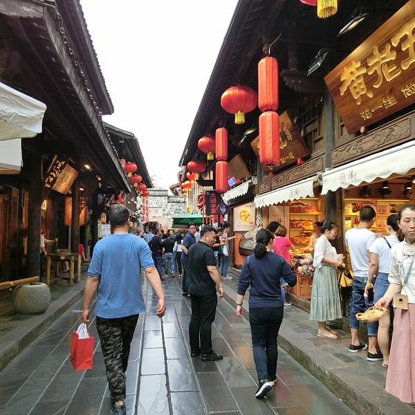 川菜、火锅、张飞牛肉、老妈兔头、川剧茶楼还有各色的小商品、工艺品遍布了整个大街小巷。