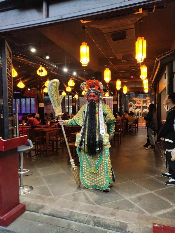 出来的时候天还早,白天的锦里效果会打折扣,于是进到一家咖啡厅,喝咖啡休息一下,顺便等天黑;锦里里面好多喝茶看戏的店,感兴趣的可以试试