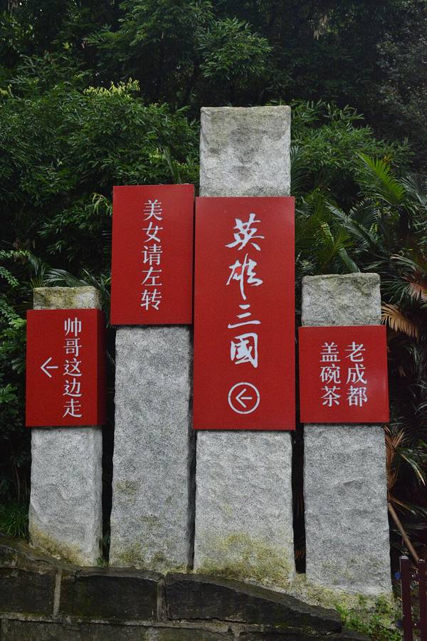对联沈伯俊先生所撰,邓代昆书。猪鼻子二师兄的鼻子,味道还不错。马超锦里身为三国历史遗迹,景区内自然少不了随处可见的三国元素,三国名人雕像便是其一。导路标走帅哥方向,不要问我为什么。熊猫钥匙扣在熊猫的故乡,熊猫饰品遍布大街小巷。大茶壶古街上摆放着大茶壶和大茶杯装饰,以此来宣传当地的茶文化。大蜗牛安放在锦里古街上的铁质大蜗牛,触角都不见了,不知是岁月的痕迹还是人物的损坏。莲花府邸莲花府邸成都锦里赫赫有名的一家音乐酒吧,谭维维、郁可唯、喻佳丽、王铮亮都曾在此停留。