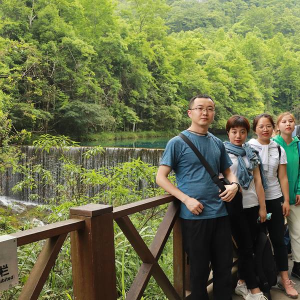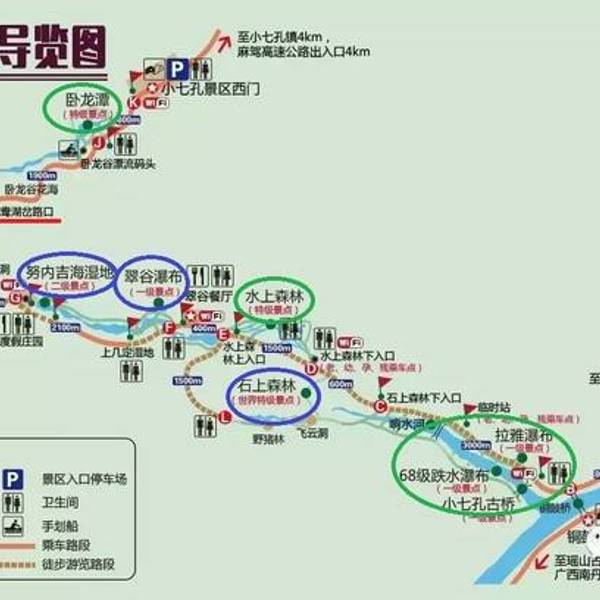 大小七孔的门票是一起的,无需重复购票。景区的观光车也和景区门票一样,两日内有效,景区内有固定的站点,你可以根据自己的实际选择分段乘坐观光车比较人性,票价40值得,如果时间充足,大可好好享受这大自然的美色。从集散中心下行200米,是观光车乘车点,左手边是前往小七孔的观光车、右边便是大七孔景区。因为时间还早,为了能拍下小七孔最美的景色,我没有把大七孔作为第一站而是作为今天的终点。打捞垃圾的船夫刚好走过,这样的景色好不惬意。走到观景台,向留下一张自己的照片,至少可以说明我曾“到此一游”,公交车上坐我后面的两个青年正好也在,便请他们为我拍照,闲聊之下,我们三人便成了团。(绿色衣服的是遵义的小妹妹,前景是山西的小哥,我就是中间白色衣服的那个了)从小七孔古桥开始上行1.6公里这段距离,集合了小七孔的所有最美丽的景色,68阶瀑布、飞瀑、拉雅瀑布接踵而至,十分密集,我们3人沿着河流一路往上游徒步,一路上有说有笑。为了拍出这张照片,我们在这里逗留半小时有余。到了鸳鸯湖景区,3人商议,决定到湖里游玩一番。在购票时,遇到两个想划船的旅友,划船5人组就这样组建而成了。越往里划,水色越深。左右开弓,初次见面的5人既然配合及其默契,谈笑间时间从船桨中流过,被甩在身后。听工作人员说,汛期的鸳鸯湖湖面更广,人在船上坐,船在水中游,两周是被湖水拦腰的大树。可惜没赶上好时候。接下来的卧龙潭我们5人结伴而行。最终留下一张合影。游玩卧龙潭,我们乘坐观光车回到景区入口。山西的小哥要赶赴千户苗寨,就此分手。新加入的云南的两位小姐姐因为时间较紧决定坐船游览大七孔,最终剩下我和遵义的小妹妹二人沿着河流步行观赏大七孔。 展开
