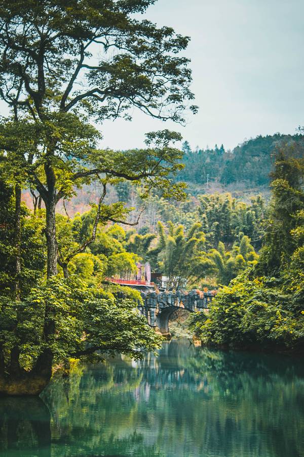 古桥那段如天然之镜,之后有百条小瀑布沿路飘过各有姿态, 再有森林植被寻幽访胜, 更有鸳鸯湖划船探险。
