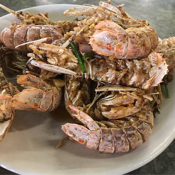 🦐椒盐皮皮虾 来海南必吃一下皮皮虾 外地很少有 我们点的皮皮虾个头不大 但比较好拨 油炸后的皮皮虾和椒盐味很好的融合在一起 虾肉也很嫩 店员贼热情地问我们需不需要帮我们拨虾哈哈哈 太照顾懒人了😌