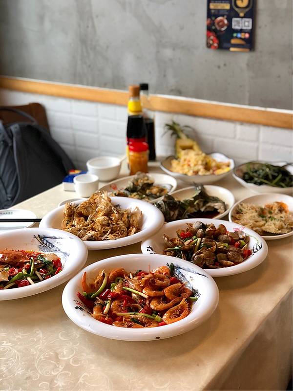 傍晚时候,林姐家的生意好到爆棚了。听店员说他们家开了快二十了,厨艺真的好好。上菜了,眼馋吧!清蒸大龙虾,看着就觉得很有食欲,肉质饱满,而且非常好吃,这里的龙虾非常便宜,所以到这里来一定要点上一只,一只价格大概100出头,超值。海胆蒸蛋,第一次吃觉得味道很特别。林姐他们家的招牌菜香辣蟹,也算吃过不少海鲜,但是他们家的香辣蟹是我这辈子以来吃过最好吃的。椒盐皮皮虾,从色泽上看已经欲罢不能了,真的是太好吃了,超级入味,吮指皮皮虾,我的最爱之一。