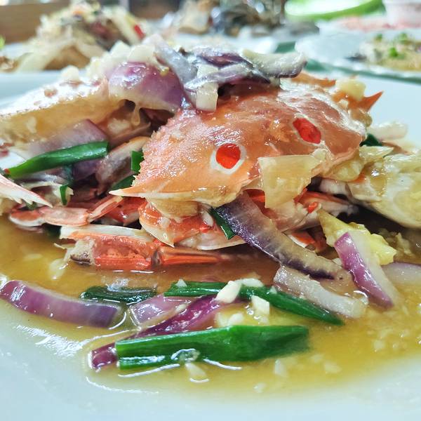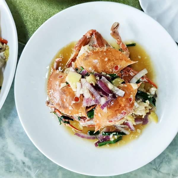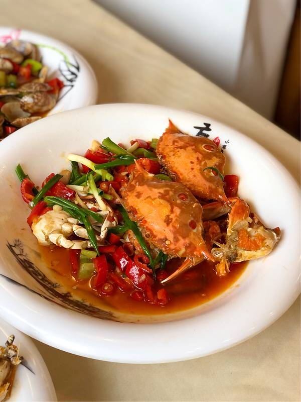 🦀️炒和乐蟹 海南四大菜色之一的和乐蟹 满满的蟹膏在壳里 肉质肥美 辣炒的做法很合我口味