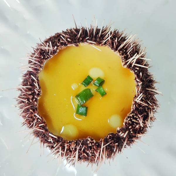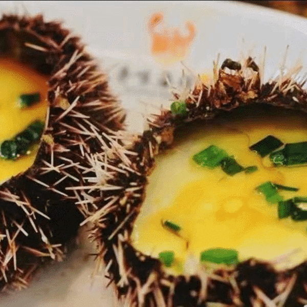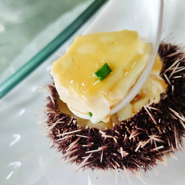 三点蟹,又称“红星梭子蟹”,用姜葱炒最能将蟹肉的鲜味完美保留。这个季节的三点蟹肉多膏肥,姜葱味和蟹肉的鲜美相得益彰!海胆蒸蛋