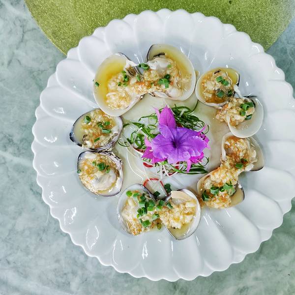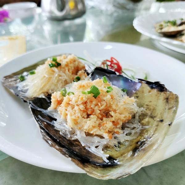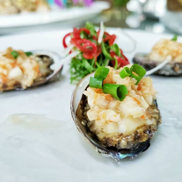 鲜活的鲍鱼肉肉肥肥哒!在蒜蓉和姜葱的配合下,光卖相就很诱人啦!一口一个QQ弹,吃起来简直不要太幸福!蒜蓉粉丝蒸带子