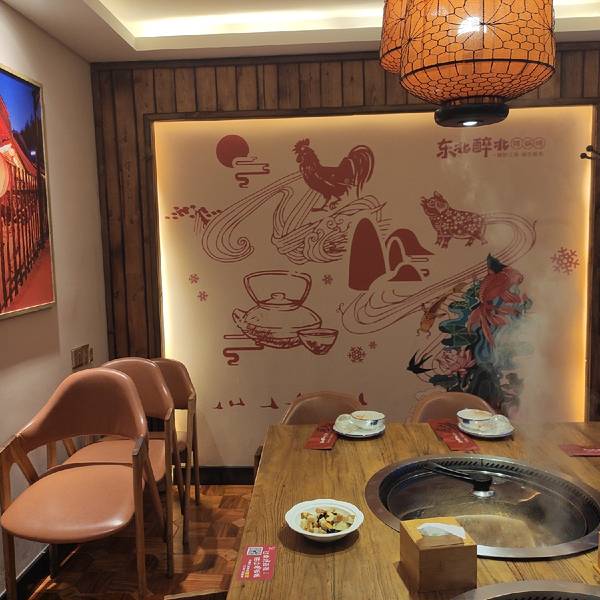 开在家附近的一家铁锅炖,挺有特色的。 名字有特色,装修也有特色,浓浓的东北风,雪景,灯笼,好像一下子就到了东北雪乡。 八个人,点了一个红毛大公鸡,一个鱼锅,感觉应该是够吃了,没想到旱涝不均,鸡锅早早就吃了了,鱼锅还剩了1/3,说明不管江鱼怎么好,还是肉更对东北人的胃口啊。 大锅炖的味道挺好,尤其是粉皮、粉条这种吃味儿的菜,吸足了汤汁,更抢手,爱吃的可以多加一份。小花卷很快也被一扫而光,饼子虽然和鱼锅更配,但是花卷的口感明显更受欢迎,爱吃的也要提前跟店里说加一份,人多的话一份肯定是不够。 炖一锅大概需要四十分钟左右,着急的可以提前打电话跟老板说先做上,这样到了就能吃。 说说缺点。 一是比较咸。东北菜口味普遍比较重,我也算是个口重的人,但是大酱的味道真的是很咸,可能这个也是鱼锅剩的比较多的原因。 二是餐具要两块钱一个人,收费正常,两块钱就有点儿很不讲究了。 三是众所周知的原因,这种大锅炖的环境就只能吃饭,没法唠嗑,所以霹雳噗噜很快就吃完散伙了,只适合家人朋友吃饭,不适合宴请和喝酒。当然了,这样的话翻台率比较高,店家肯定是欢迎的。 整体上来说还算不错,就这个位置来说,性价比比较高,可以来吃吃,但是真正想吃铁锅炖鱼,我还是推荐老六。 其实本来我是想给三颗星的,因为前台结账那个小伙真的让我很不爽,但是前台的大姐挽救了这条点评,从订餐到用餐,到服务到送客,他真正做到了让我无可挑剔,为她加一颗星,为她还会再来。 至于朋友们你们来不来,就看自己这顿饭需要怎么吃了,希望这条评论对你们有帮助。