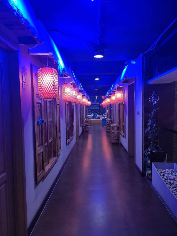 开在家附近的一家铁锅炖,挺有特色的。 名字有特色,装修也有特色,浓浓的东北风,雪景,灯笼,好像一下子就到了东北雪乡。 八个人,点了一个红毛大公鸡,一个鱼锅,感觉应该是够吃了,没想到旱涝不均,鸡...