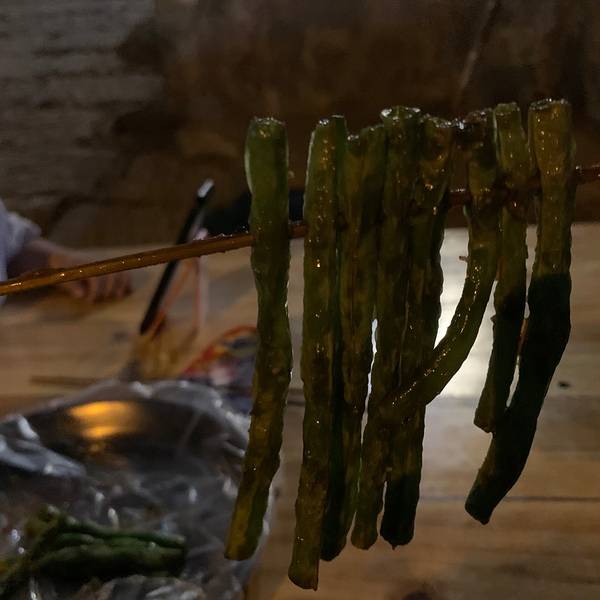 称得上是黑暗料理的一家烧烤店,除了烤猪眼,还有烤猪鞭、猪大肠等等,当真是只有你想不到的,没有你吃不到的。店家采用炭火慢烤,连酸菜都能慢慢烤制出难以忘怀的味道。