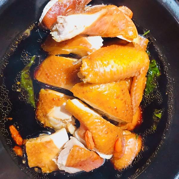 鸡肉嫩滑新鲜,在汁水的烹制过程中,满满的甜汁已经全部锁进肉中。