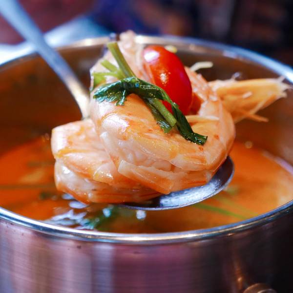 三亚旅行,在海棠湾发现一处超适合逛街的地方 🌈海棠68环球美食街,不仅美食多,大型综合综超、海鲜超市、水果超市、工艺品商店、服饰饰品、特色商铺等也一应俱全,每晚19:30左右还会有驻唱歌手表演。美食街分布着十几种来自世界各地不同菜系的美食,也可以进行海鲜🦞加工,这次我们来的是一家🇹🇭泰国菜餐厅,店名:泰越轩。餐厅整体风格散发着浓郁的东南亚热带风情,主厨来自泰国,烹饪技术一流,菜品口味纯正,摆盘创意十足。泰国手摇奶茶(冻):淡淡的甜,冰凉丝滑,细腻醇厚。招牌咖喱皇蟹:咖喱的口感多了一丝柔和,鲜美的蟹肉和烤面包蘸上金黄的咖喱酱,好吃到停不下来。泰式冬阴功虾汤:虾的个头很大,泰式香料秘制的虾汤层次丰富,喝起来很开胃。手打虾饼:外皮酥脆,里面包裹着的虾肉Q弹鲜香,配上蔬菜和蘸料一点都不会觉得油腻。此外,泰式明炉烧猪颈肉、泰式酸辣凤爪、泰式虾酱拌饭、泰式红珍珠,也都非常好吃😋。地址:(三亚)海棠北路三亚海棠湾君悦酒店(君悦酒店旁,靠近红树林酒店与喜来登酒店) 营业时间:9:30–22:30