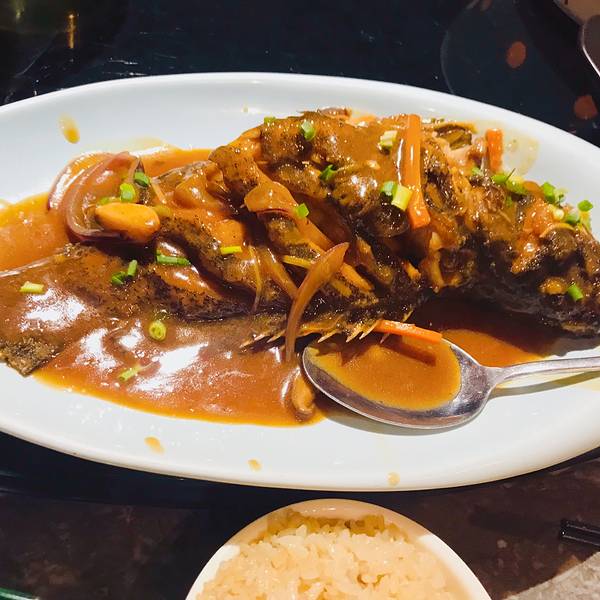 - 清蒸石斑鱼,海鲜只要足够新鲜,下去清蒸都会非常好吃的。辣炒芒果螺,也是很好吃,炒得很入味