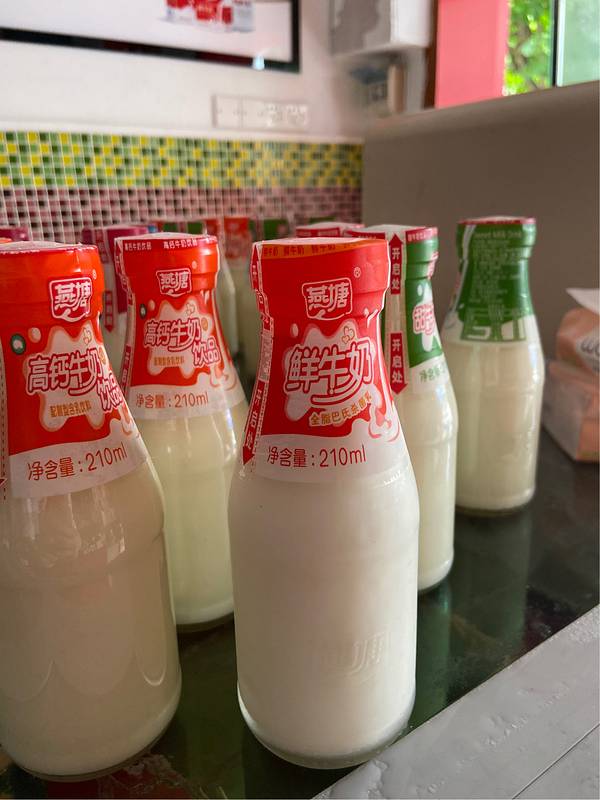 广东本地的好牛奶——燕塘牛奶🥛 在湛江的路上溜达的时候经常看到“燕塘”的招牌,后来听说燕塘是广州最早的乳制品加工工厂🏭有将近半个世纪的历史。 奶制产品的种类也很多,经过这家店突然就想试试本地的牛奶于是进来看看,结果发现即使是同样的玻璃瓶,也分不同种类,有牛奶发酵乳,有高钙奶,优酸乳,纯牛奶等等非常丰富。 看到这种玻璃瓶的牛奶总让我想起小时候家里订的鲜奶。远了一瓶鲜奶,从冰柜里拿出来的时候还很冰,店主老爷爷问要不要加热,就帮忙放进微波炉叮了一下,牛奶就变得温热了。于是坐在小学门口听着上课铃,喝完了一瓶牛奶(嗝) 鲜牛奶的口感很好,奶味十足真的很不错👌 #浪游视界#