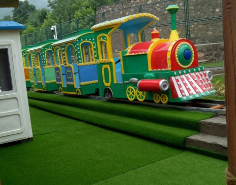 ...玩的地方,小秋千啊,刺激的滑滑梯啊,攀爬,小火车,撞撞杯,旋转木马,都可以让小孩子玩的很开心哦