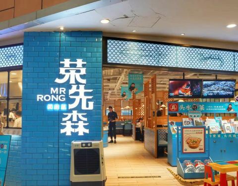 荣先森有很多的分店,每家分店都是第一个统一的规模,那个蓝色的牌子,它是一家以专门做闽南菜的餐厅,上菜的速度也挺快,比较有名的特色