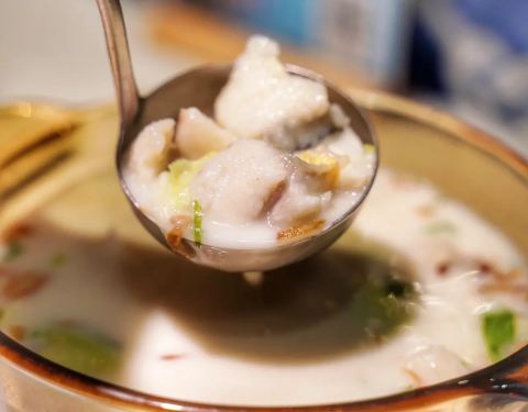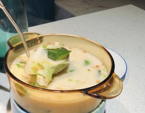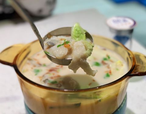✨ 选用农夫山泉矿泉水做出一锅好鱼汤。黄花鱼口感嫩滑,入口即化,剔除了中间的鱼骨,吃起来没刺很方便。汤呈奶白色,喝一口鲜美暖胃,可以自己适量加点胡椒粉,去腥的同时更能激发鱼汤的鲜。一定要试一下鱼汤泡饭,让米饭口感更丰盈。下面有小酒精炉微微加热保温,吃到最后也是热的。