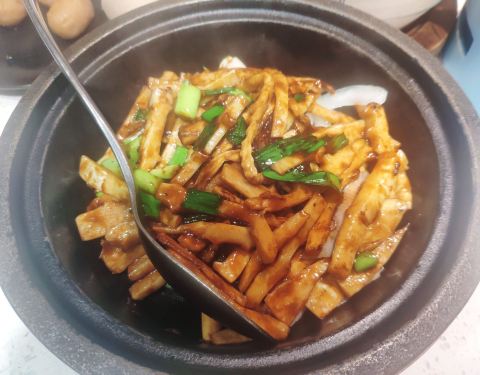 ✨建瓯产笋,选的又是最嫩的笋芽部位,即使是干焗的做法口感还是非常脆嫩,配菜洋葱垫底让笋芽不至于太干,笋本无味,豉油的加持让笋入味,很下饭的一道菜。