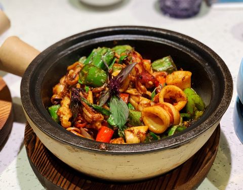 - 我居然第一次觉得这种做法完爆白灼,九层塔独特的香气加上青椒的辣,即使是酱爆做法也掩盖不了新鲜鱿鱼的脆