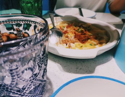 🏖餐厅环境:整体看很现代,小清新蓝和暖色调灯光相结合,让食客感到温馨又放松。门口的闽南茶具、墙上的闽南话又让人感受到闽南元素。