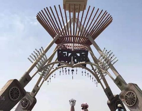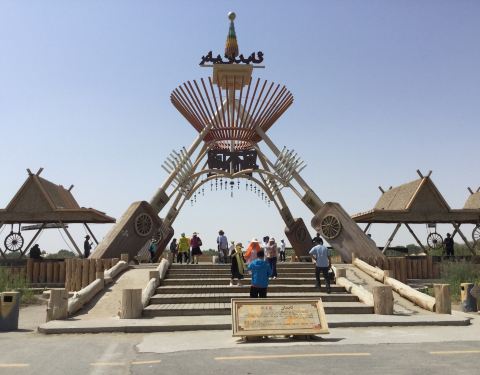 这个广场是罗布人村寨景区的起点,要说有什么看点呢就是门,修得很有特色吧