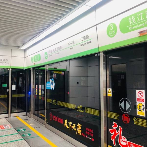 2号线和4号线上的一个站点:钱江站 主标志是香樟绿色的4号线,线路北起江干区彭埠站,贯穿整个钱江新城,全部都是地下线。 钱江站从彭埠站开始行使,这是第6站 距离杭州东站只有3站相差,这里作为一个住宿点倒是...