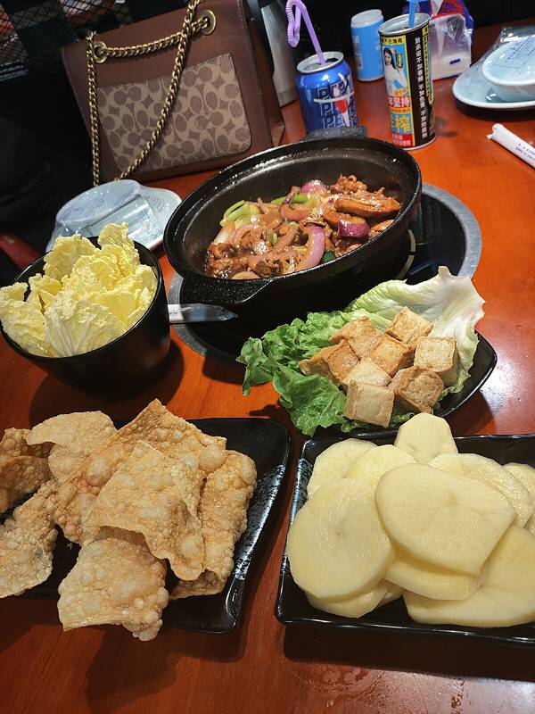 国庆节前朋友来上海找我玩,就在家附近找到了一个好吃的鸡公煲。当时我们去的时候已经11点多了,他们店里还有好多客人在吃饭。 🍃【餐厅环境】算是丰庄区域内装修风格比较F的鸡公煲店啦,有上下两层楼,2楼比较小一点。我们点的是一份套餐。还挺划算,88元中份鸡公煲和配菜。最后都没吃完,还打包带走了。 🍃【菜品口味】 🥺鸡公煲中份:他们家的鸡公煲是干锅鸡公煲,但是我让后厨帮我们做成了带汤汁的鸡公煲特好吃 🥺套餐内有4份配菜:娃娃菜,炸腐竹,鱼豆腐,还有土豆片。米饭2份。但是他们家的鱼豆腐感觉淀粉挺多的,吃起来淀粉味比较重。 🥺分量还挺大,两个人没有吃完,还带打包带走了 🍃【店内服务】他们家的服务还不错。 🍒🍒🍒🍒🍒🍒🍒🍒🍒🍒🍒🍒🍒🍒🍒🍒🍒 📍详细地址:上海市嘉定区丰庄路313号 🚗交通攻略:地铁13号线丰庄路1号口步行900米左右。 🕙营业时间:每天9:30到次日凌晨2点。 🍽推荐菜品:鸡公煲 和火锅粉