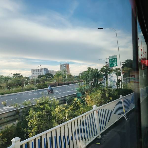坐公交车去张记森林鸵鸟主题餐厅吃饭,像专车一样,在南宁邕武路上,今天天气真好,一路看风景,也是不错的。
