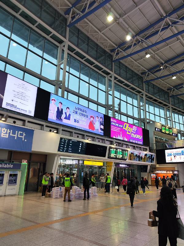 首尔站真的好方便啊,来这里地铁公交都是可以的,人很多,其实韩国做火车容易,也不需要检票,就上车就行,站里有很多卖吃的地方,咖啡店也有,很好的,我记得首尔站这还有个乐天,总之很便利,人很多,一定要注意自己的物品。