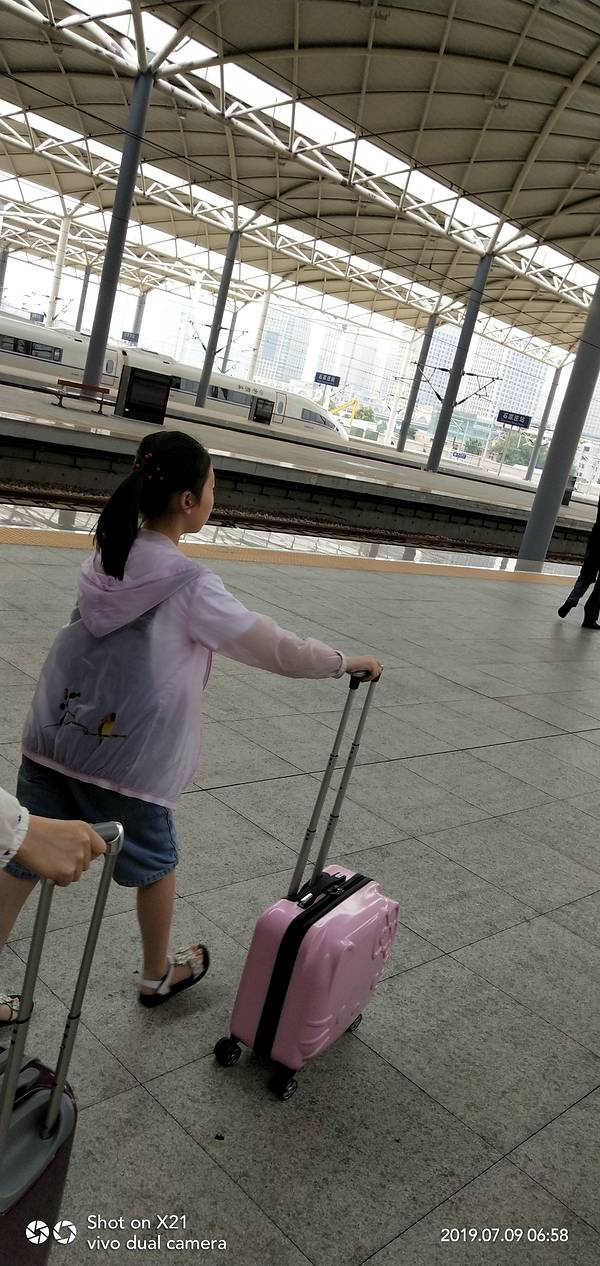 7点前到达石家庄站高铁站台。出门旅游,心情不错,老大自己推车箱子。 这趟高铁整一个旅游线路,白洋淀、天津、胜芳、秦皇岛、沈阳。沿途都有下车待一天的欲望,车上的小孩也很多,都是出来暑期游的。同行的...