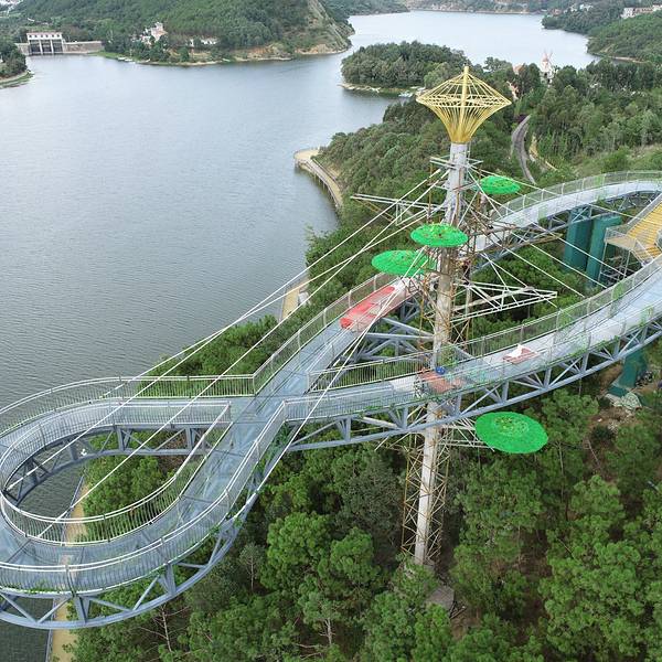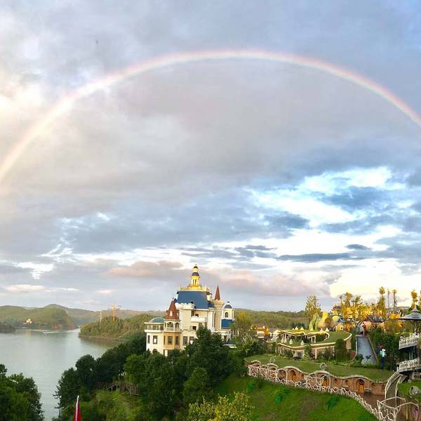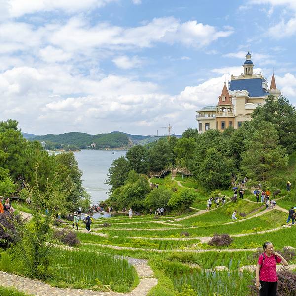 每过一段时间,我都会出一趟远门。这是我在二十六岁生日时给自己定下的规矩,身体和灵魂,必须要有一个在路上。把时间的指针拨回到两周以前,在去哪旅行这件事上,我却忽然陷入了窘境。这几个月因为工作的原因,我几乎没有时间远行,而那些离昆明近的地方,去的次数多了,也变得索然无味起来。也许是冥冥之中自有安排,就在我百无聊赖刷手机的时候,忽然翻到了之前旅交会上拍下的一张凤龙湾小镇的照片。于是,火车,森林,城堡,夏天……那些几乎快要被遗忘的场景,逐渐在我脑海中变得清晰了起来。距城市不远,离童话很近,又是我之前从未去过的地方。凤龙湾小镇之行就这样被我提上了日程。没有做太多攻略,也没有报太大期待,我和凤龙湾小镇相遇了。、圆梦