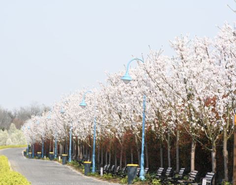 风景特别震撼,赏欣悦目,海棠花,梨花特壮观,玉兰花凋零了,桃花,观光草坪,千亩花海,一千二百米的樱花大道。聆听着悠美音乐,完全陶醉其中。
