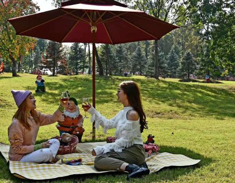 七色海棠花,原始的黑松林,珍贵的蓝杉林,高洁玉兰园,朱㑩世纪恐龙园,格林笔下的儿童城堡,千亩彩被玫瑰花海,欧式草坪,等等,绝对是个养心的好地方