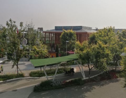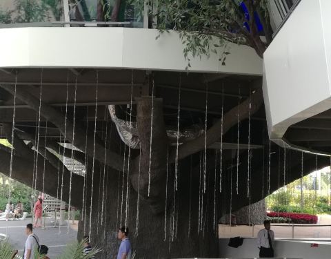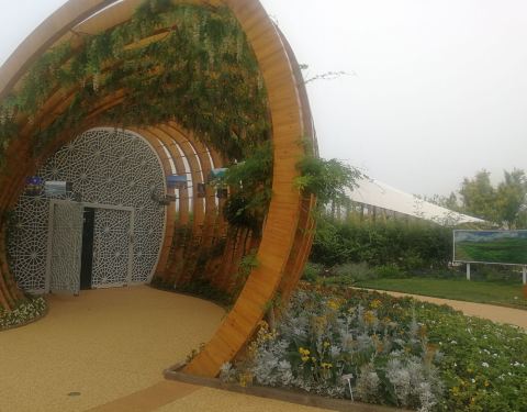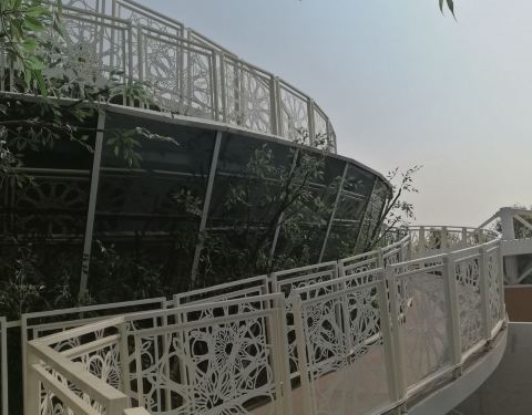 在2019年北京世园会的世界园艺展示区,各国各显神通,中东国家阿联酋的展馆拔得头筹。她高四层,最下面是一个树根一样的立柱,然后盘旋而上。