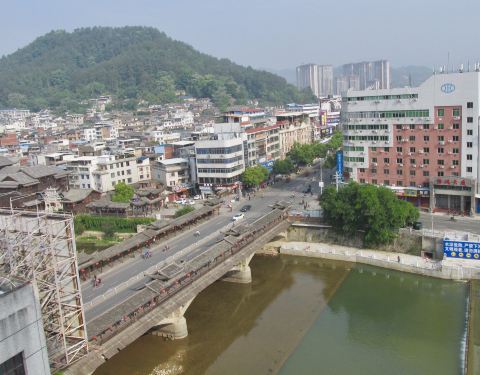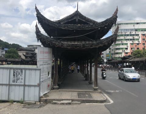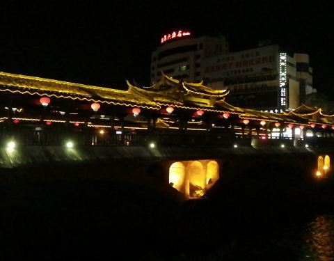 住的酒店就在汀江边、廊桥旁边。太平廊桥是一座双廊桥,全长近百米,分列于公路桥的两边。不清楚何时修建的,也算长汀一景吧,附近景观都不错的。