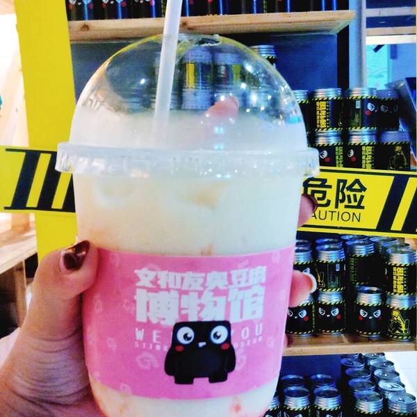 一份臭豆腐的价钱吃四个不同的味道,感觉还挺划算的。饮品有芒果豆浆、蜜桃豆浆、抹茶豆浆三种口味。