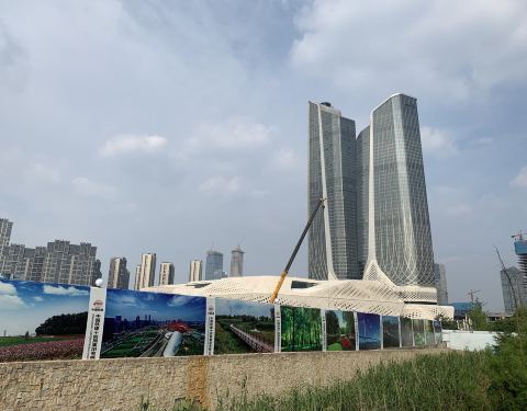 青奥中心双塔楼也就是南京国际青年文化中心双塔楼,是由世界著名建筑师扎哈·哈迪德设计,是青奥轴线标志性建筑物,也是河西一带最引人注目的建筑物。其中一栋314.5米的高塔楼是五星级酒店及办公,另一栋249.5米高塔楼昌会议酒店及配套设施。这座建筑象一艘现代的帆船。这样一个瞩目的地标建筑,经常还是有人来此拍照。前两年,有个热门的综艺节目还曾在此拍摄。