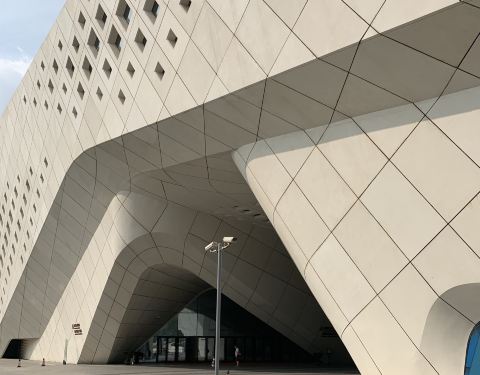 哈迪德设计,这里周围还有奥林匹克博物馆、保利大剧院、青奥公园、南京眼步行桥等建筑