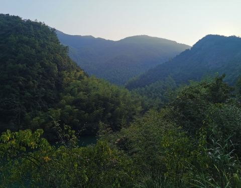 去莫干山玩,民宿老板推荐的地方,开过去的路有点难走,当时还没有完全修好,走进去也都是石子路,不过到了水库豁然开朗,景色还是十分不错的,有山有树有水,很是惬意。