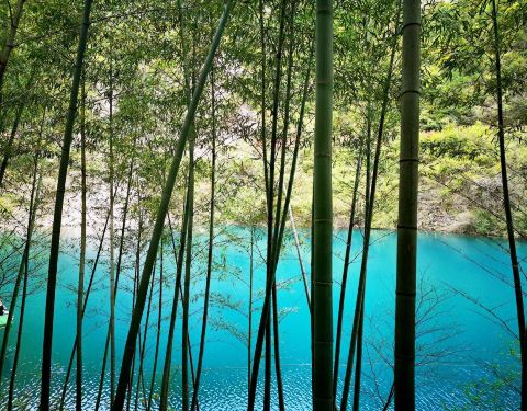 ...目前还没有开放,但是可以看到部分美景,有小九寨之称,水是蓝色的,估计开发好后又是莫干山一大特色