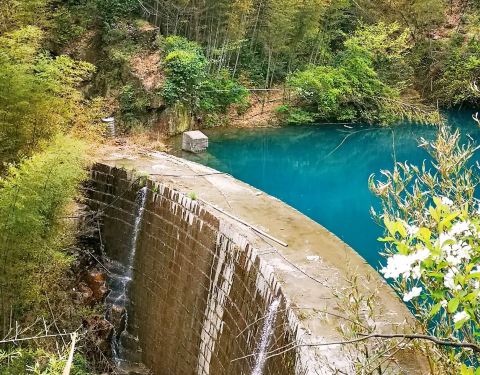 洲际投资了10亿开发的景点和度假酒店,目前还没有开放,但是可以看到部分美景,有小九寨之称,水是蓝色的,估计开发好后又是莫干山一大特色!🤔